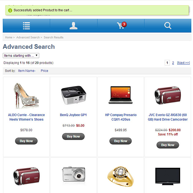 Columnar responsive product listings automatically adapt to 4-column, 2-column or 1-column listing in accordance to the browser width. Only CSS styles are used for this purpose. See more screenshots under the main product image.